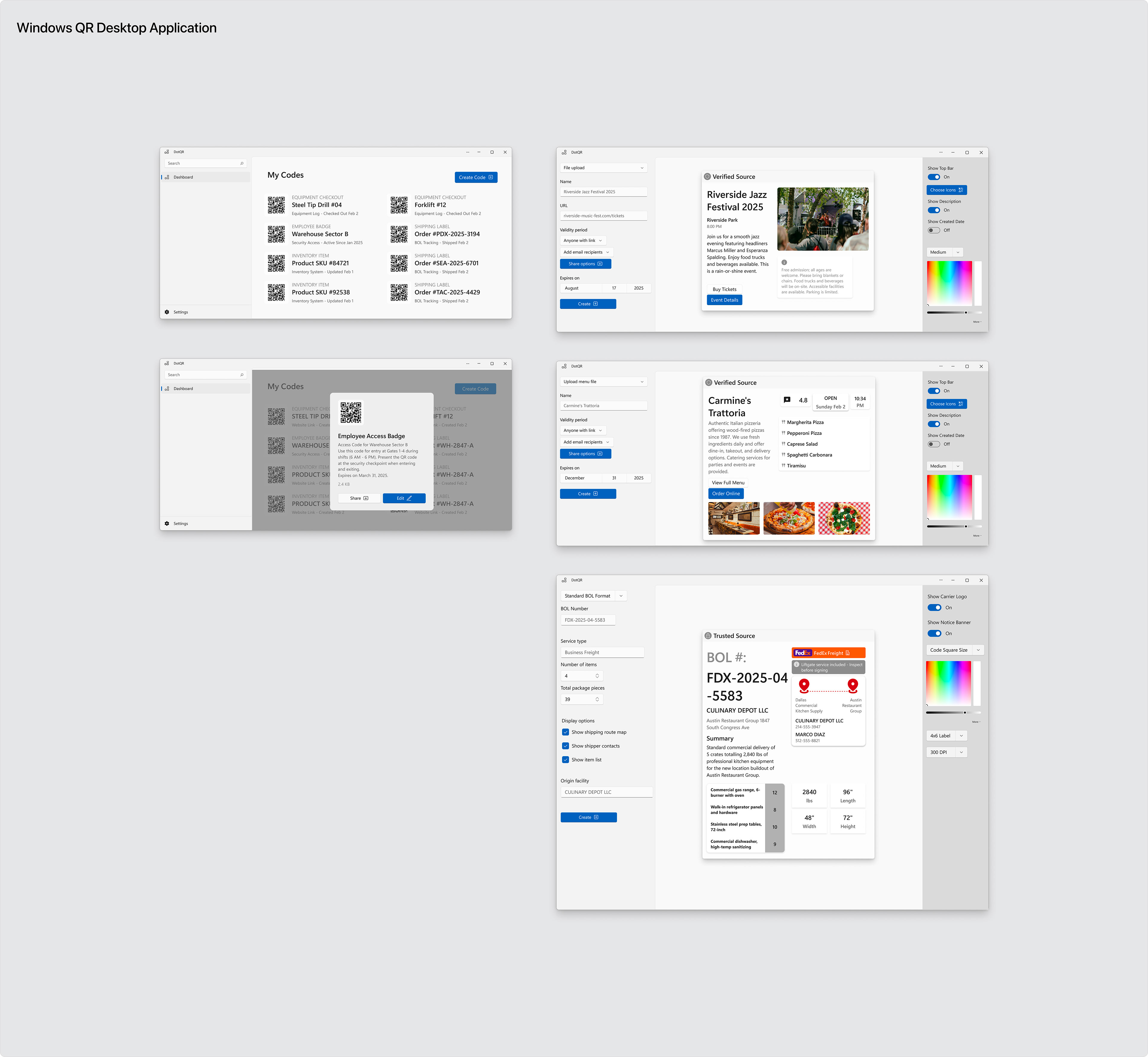 As I continued designing contextual previews, I realized that embedding structured data in QR codes can empower developers and stakeholders to create more dynamic, valuable solutions. A restaurant menu QR code should include information about the restaurant itself, not just a link. An event ticket should carry structured event data, and a shipping label should contain package details.