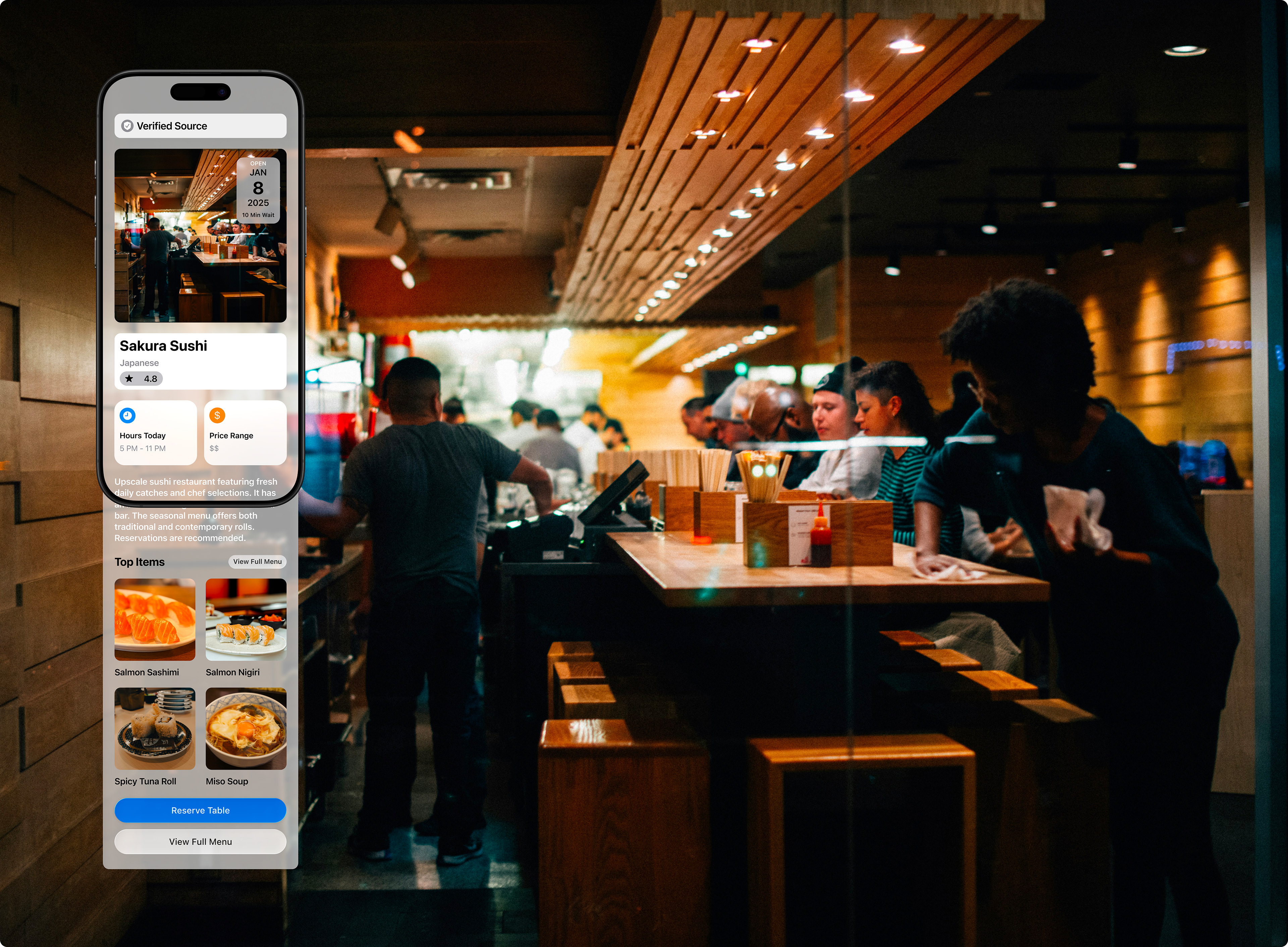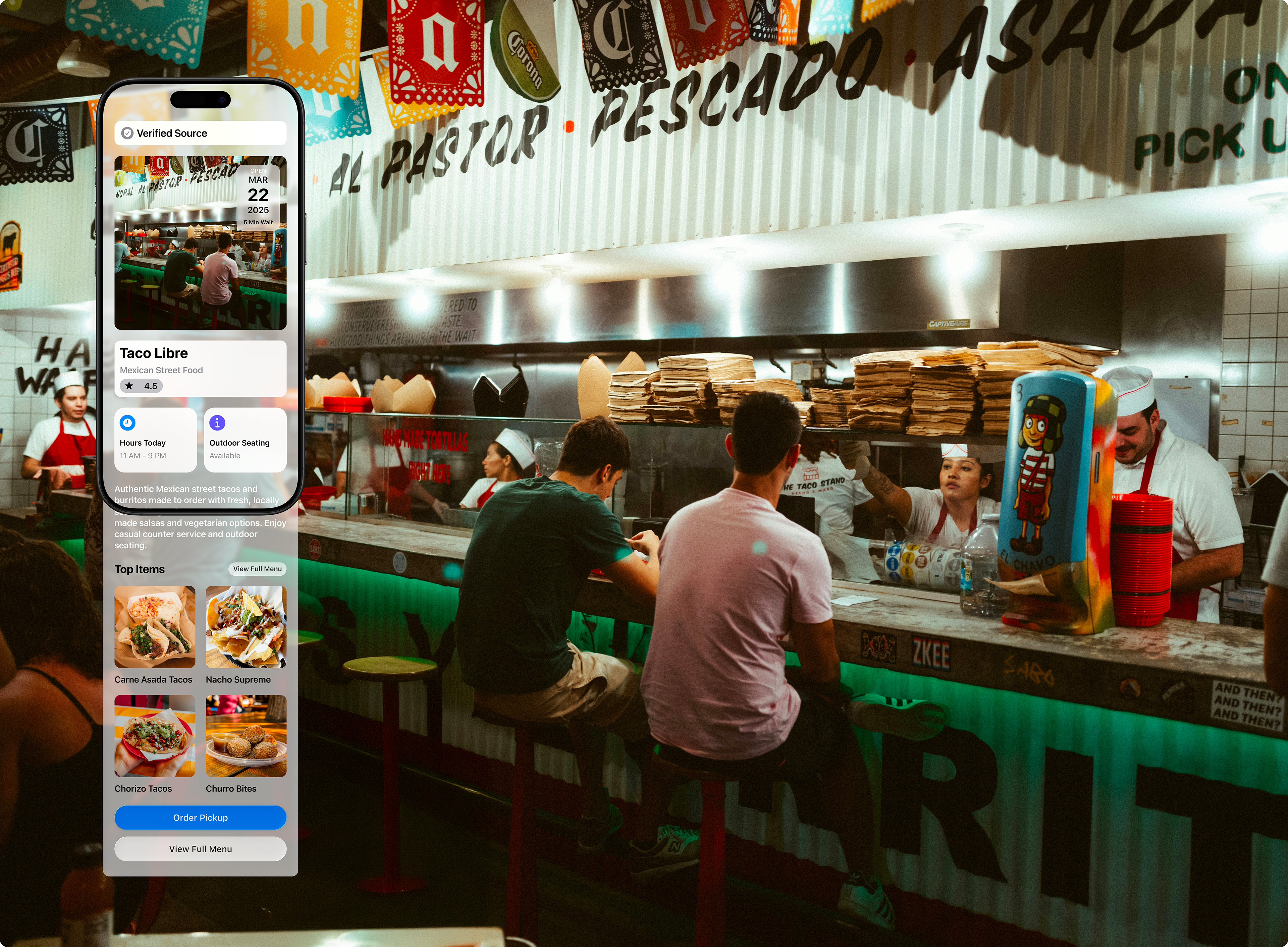 A diner scans a QR code at a restaurant. The preview displays the restaurant’s name, cuisine type, and hours, then loads the full menu. This feature helps eliminate confusion in areas where multiple establishments operate close together.Event Poster